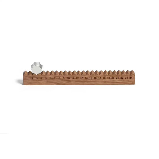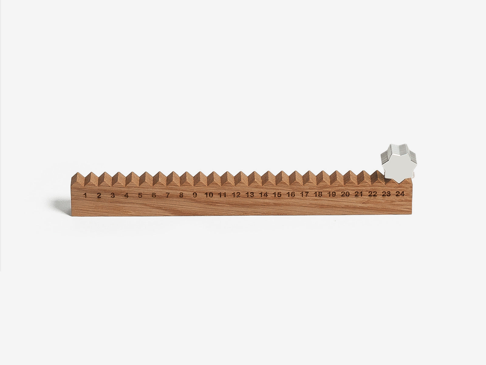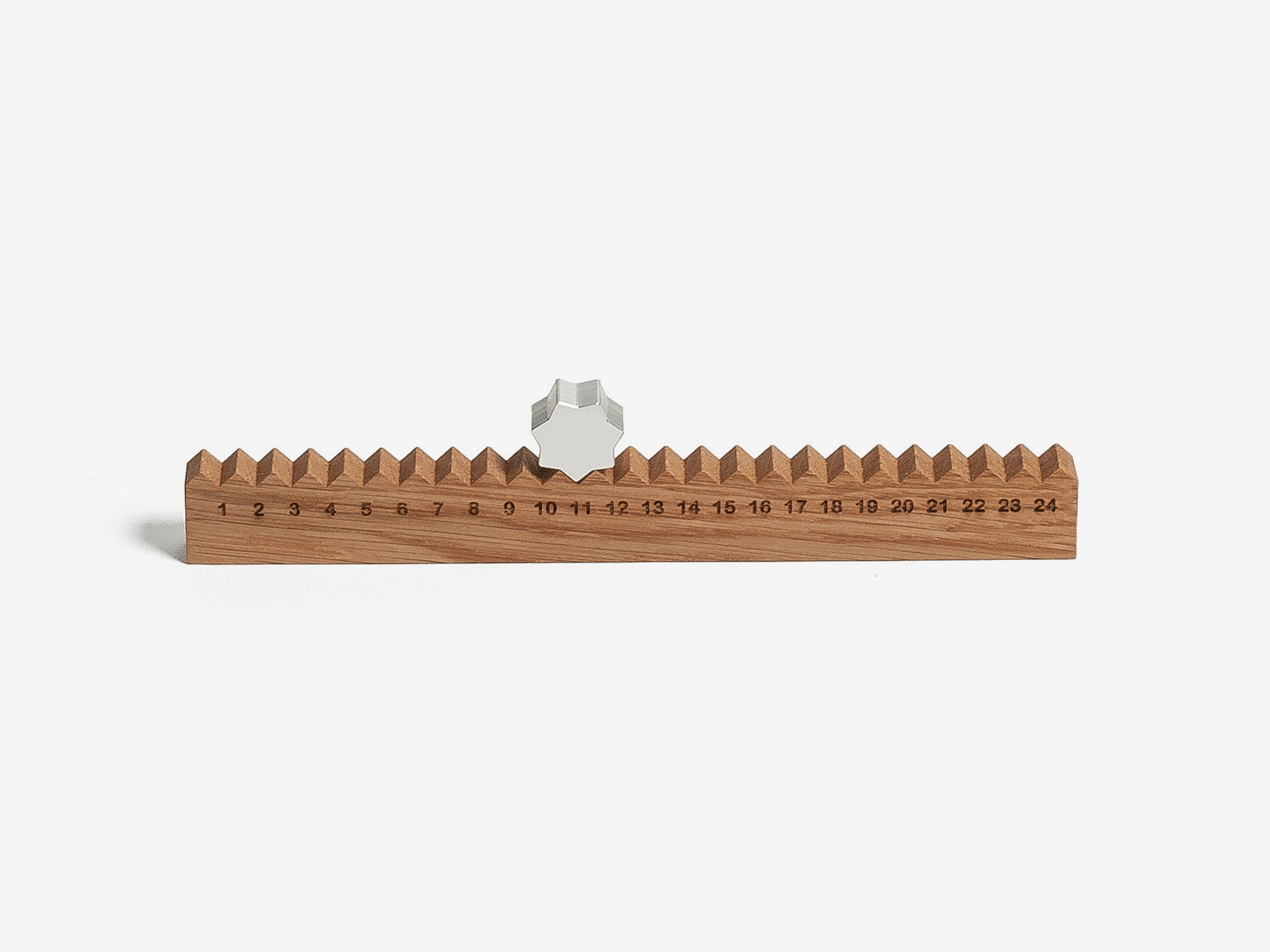 Advent Measure is an advent calendar based on the Monthly Measure perpetual calendar. The star is rolled along the serrated side of the ruler to mark the countdown to Christmas!