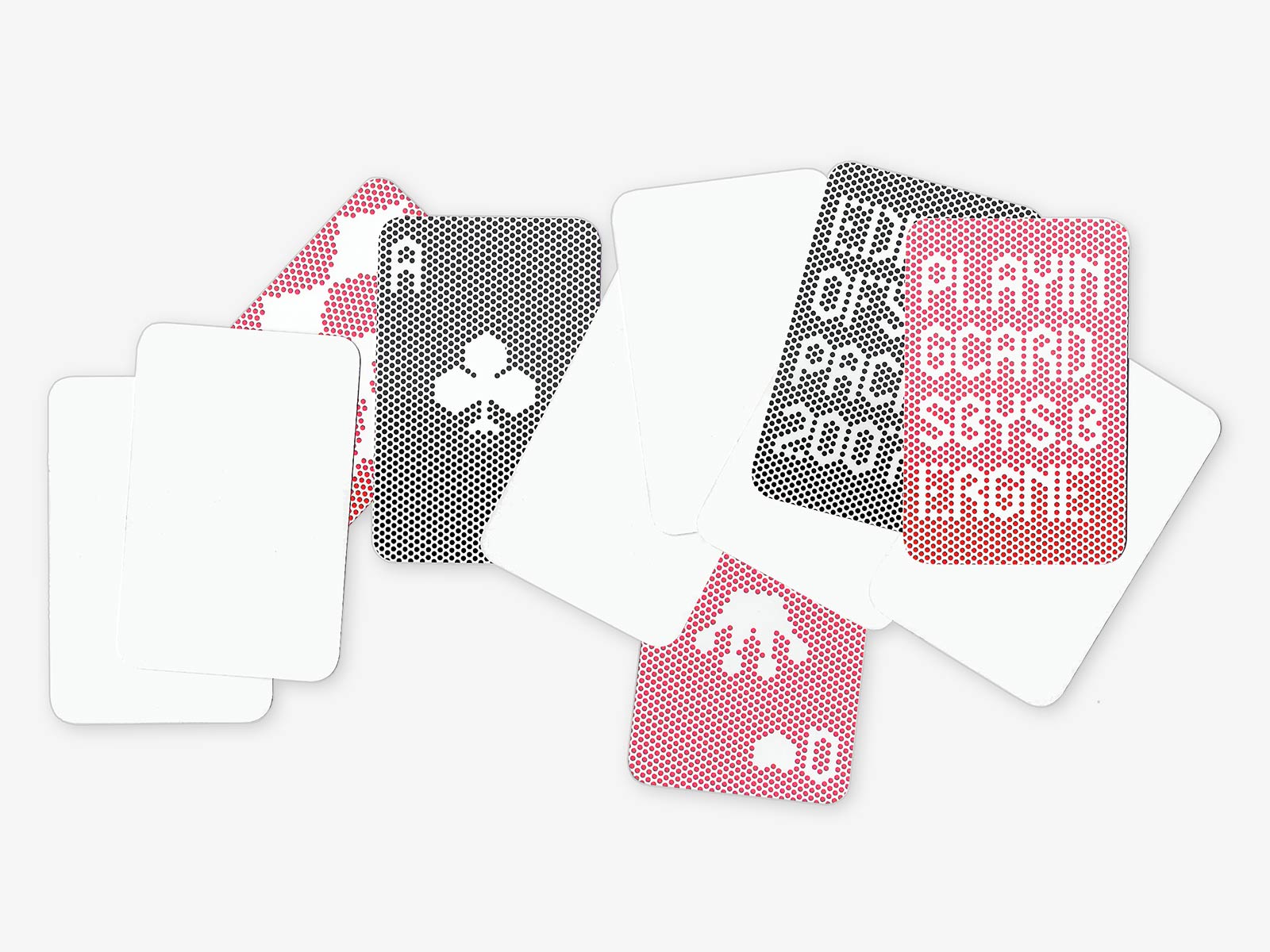 These “Back To Front” playing cards are a light hearted redesign of the classic bridge format deck. The face of the card has been pushed onto the normally patterned back, leaving the front blank. Players are obliged to use the cards Back to Front.