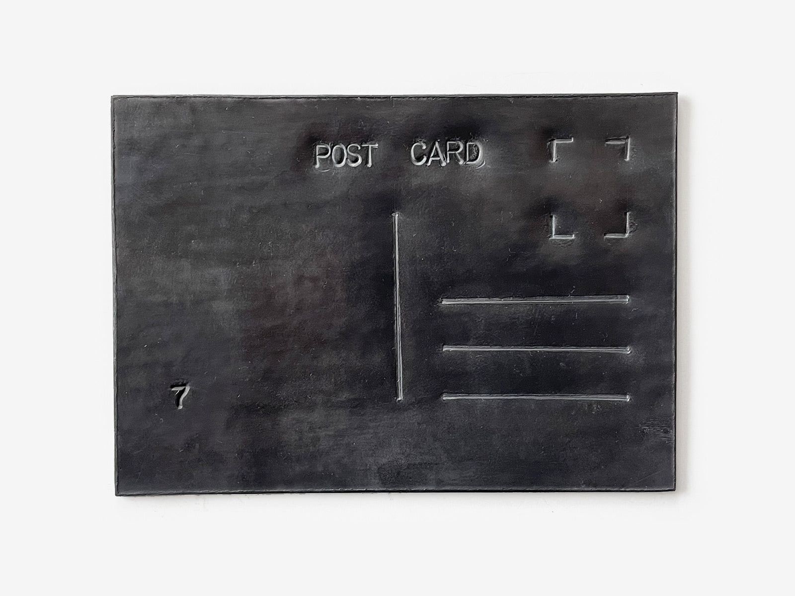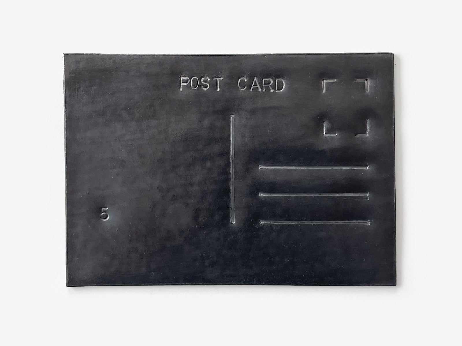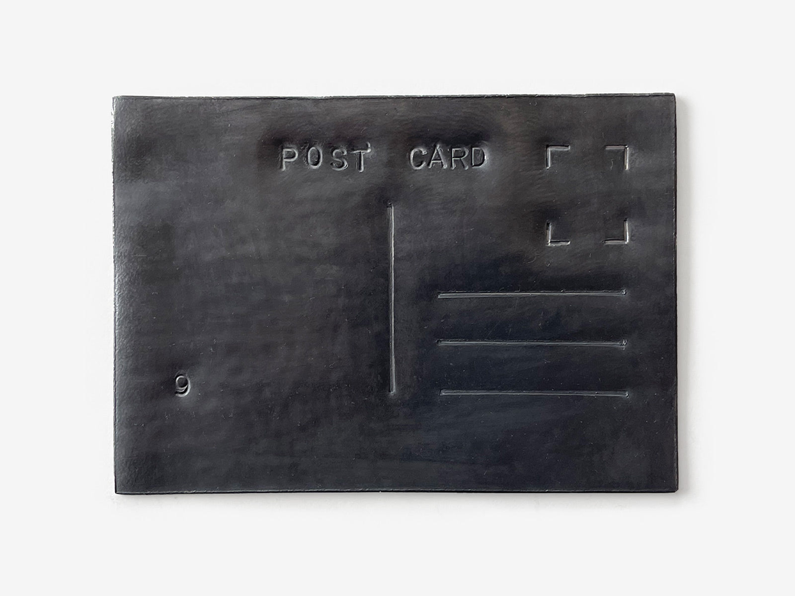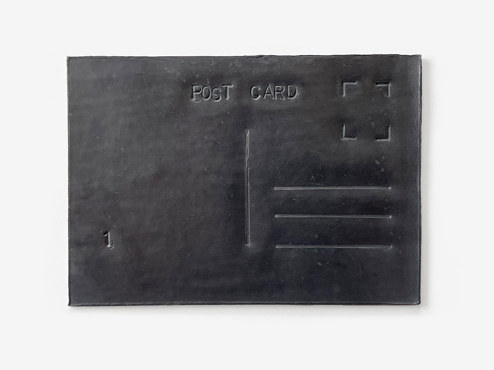 A post card is a light, communicative object, full of life and positivity. Here it is rendered immobile, fragile and silent by a simple change of material.
