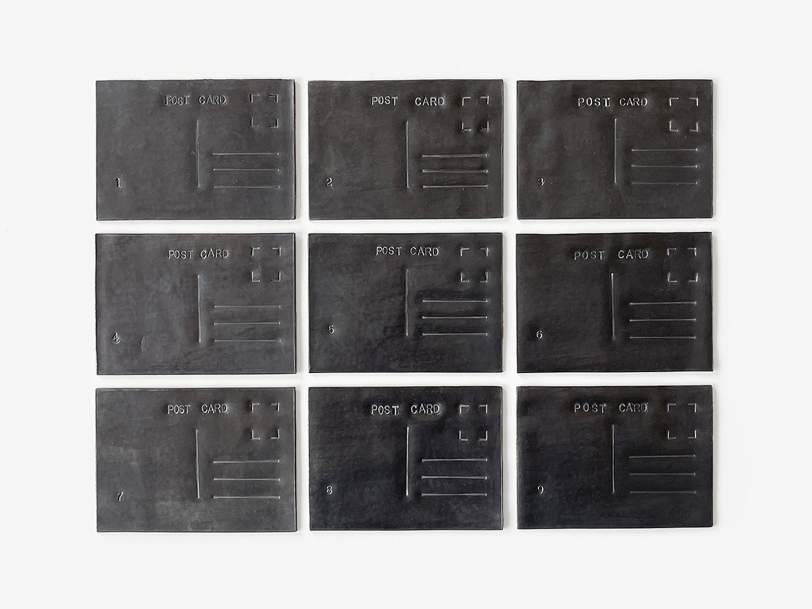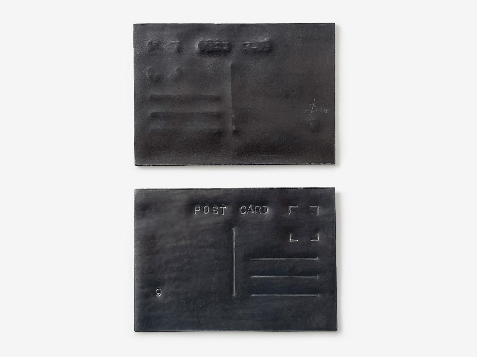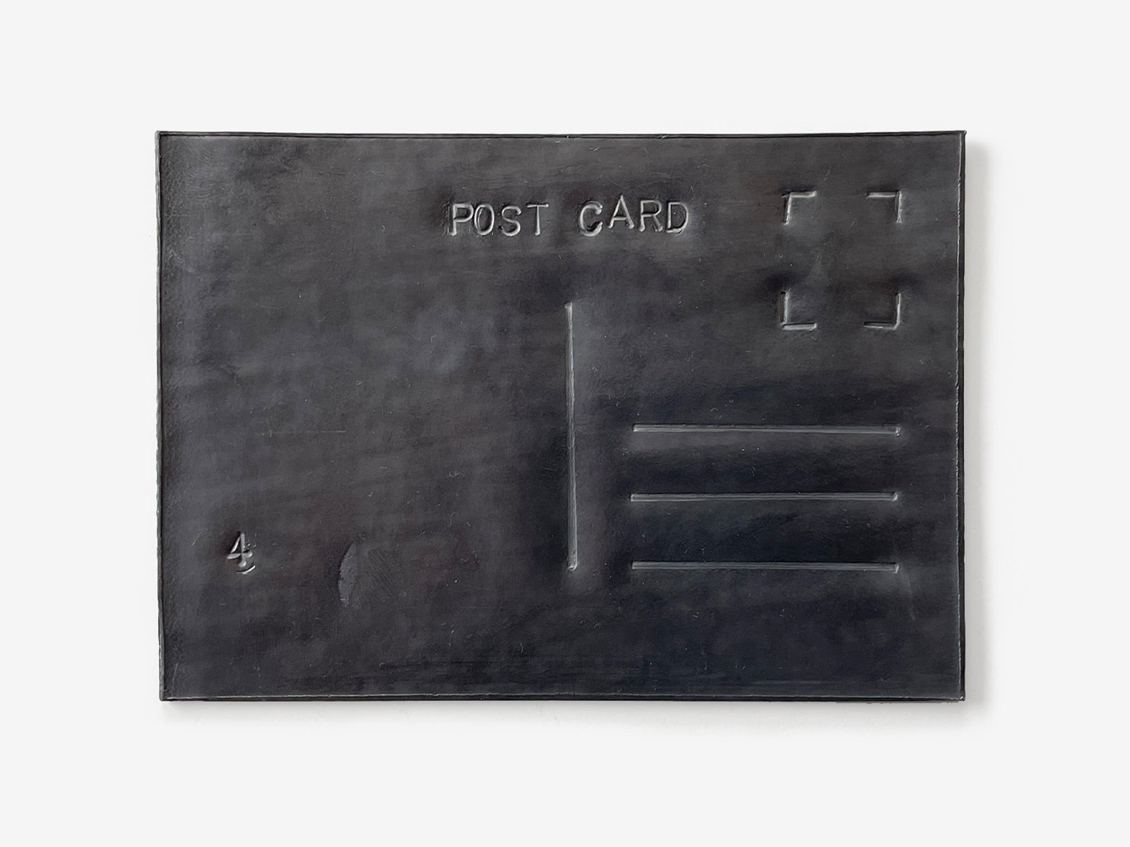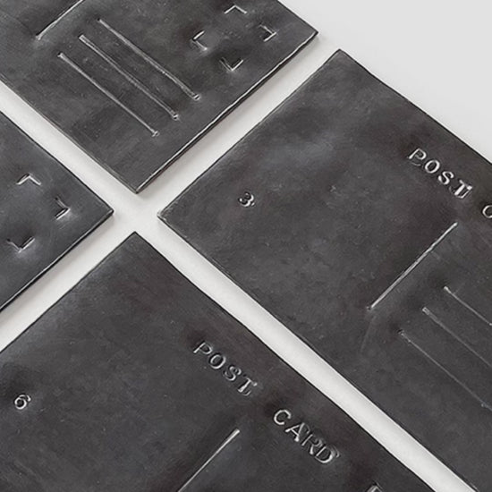 A post card is a light, communicative object, full of life and positivity. Here it is rendered immobile, fragile and silent by a simple change of material.