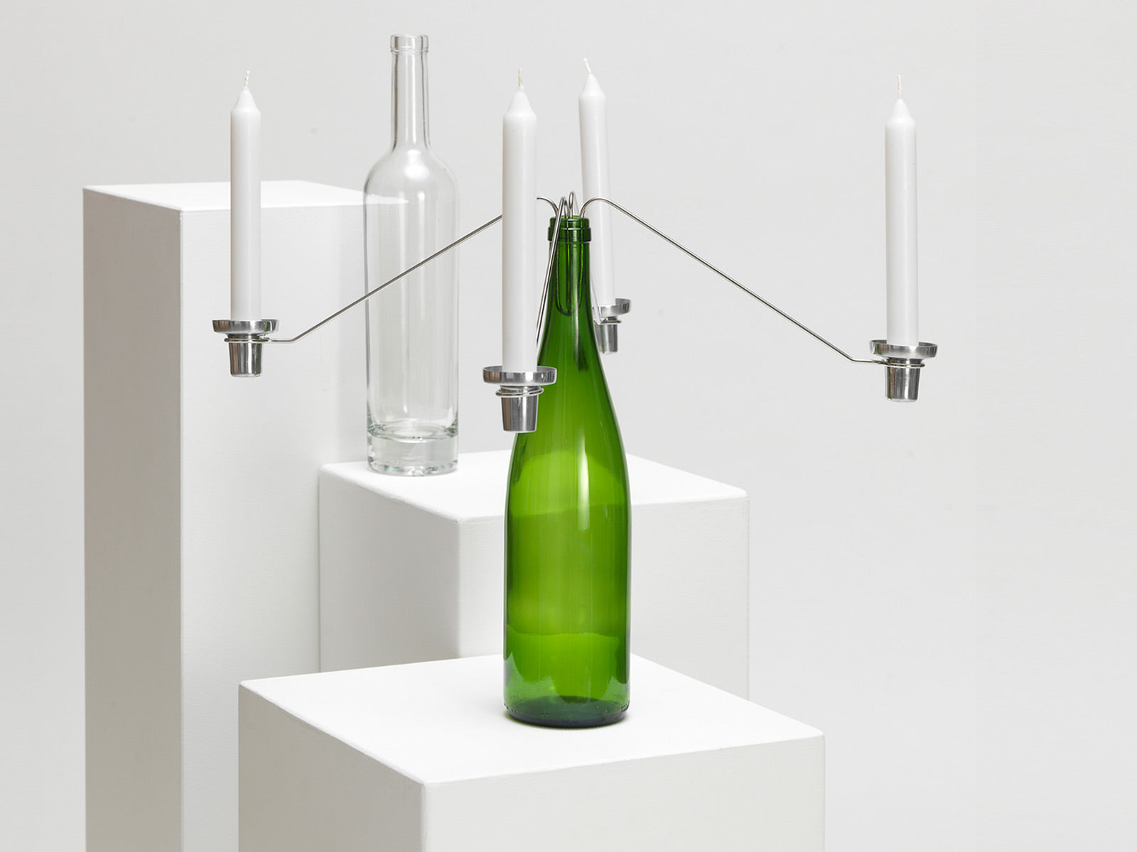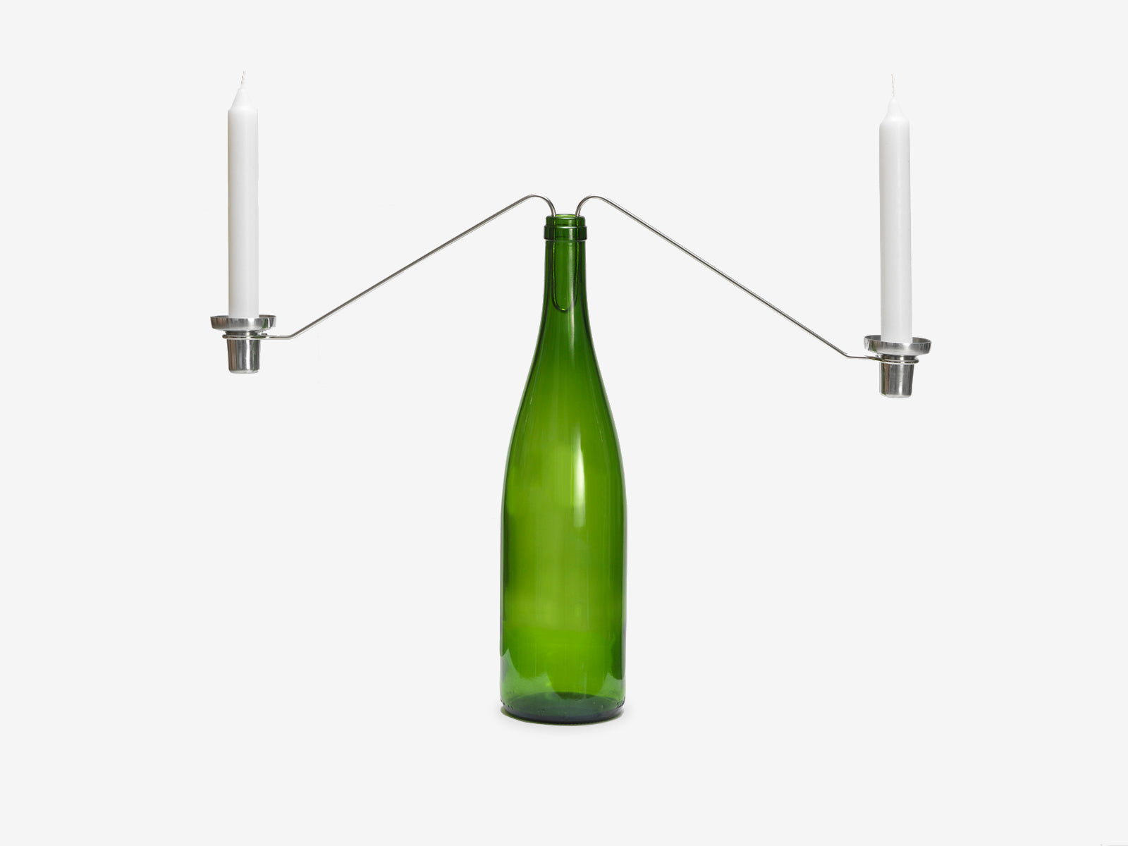 Candloop is a simple and fun take on the traditional candelabra, a wine bottle candlestick. The bent stainless steel wire with aluminium holders clips into any wine bottle. You can even use more than one to make a festive multi arm version.