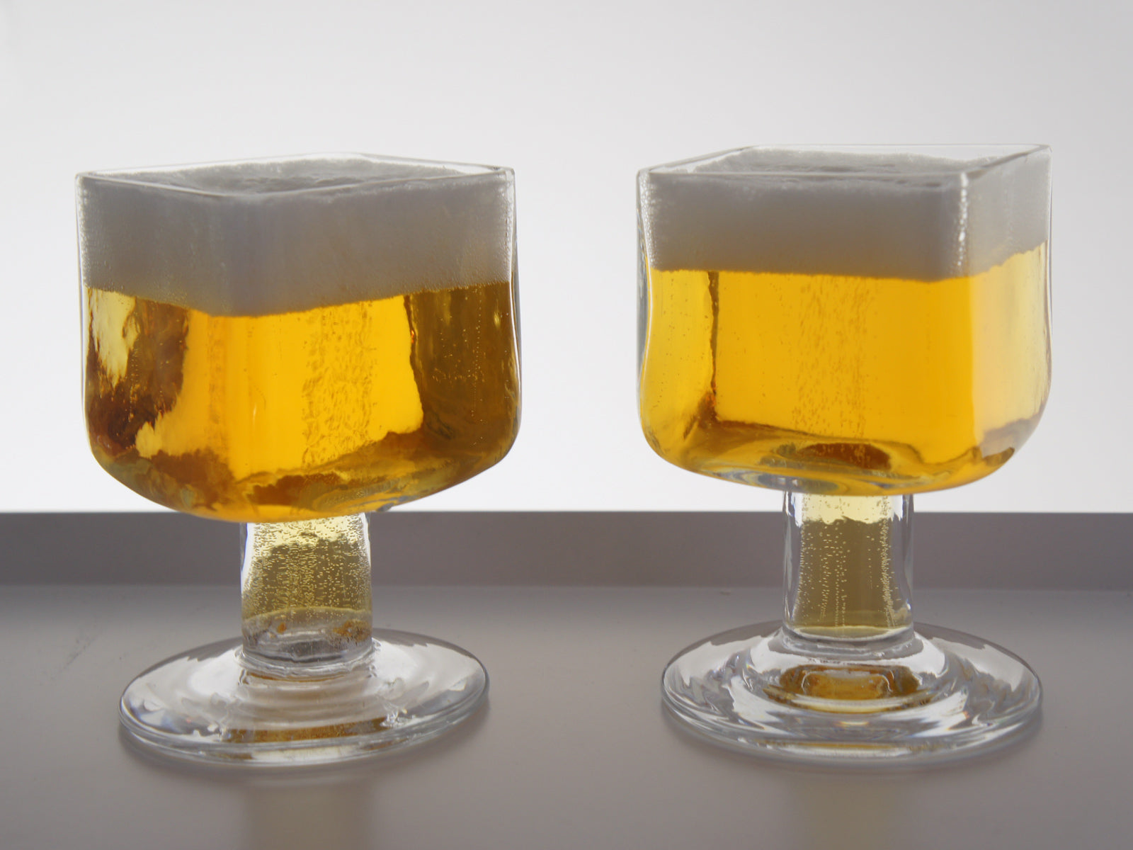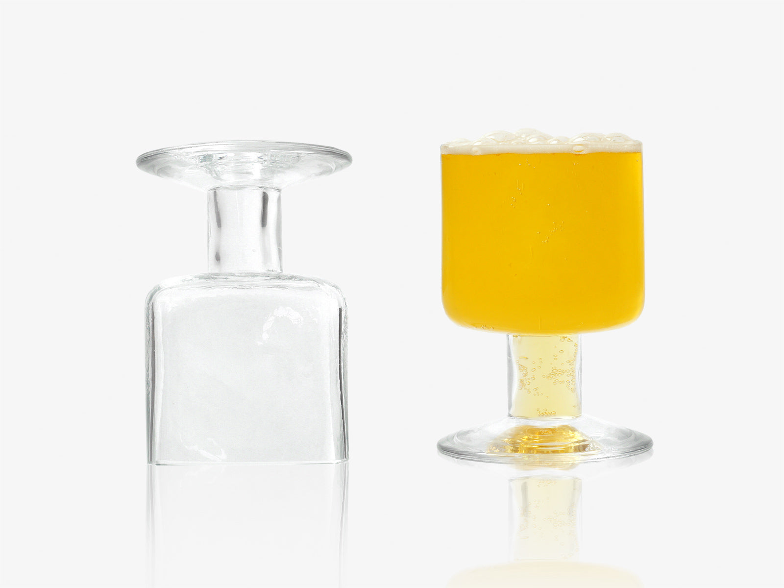 In this case the square section and neck of the bottle form give the glass a strong visual character and adds a functional twist. The volume contained in the stem is useful to measure an amount of bitter liquor or fruit syrup increasingly mixed with beer. In the area around the CIAV there is a popular tradition of adding a shot of Picon to your beer and the Cubit glass is ideal.