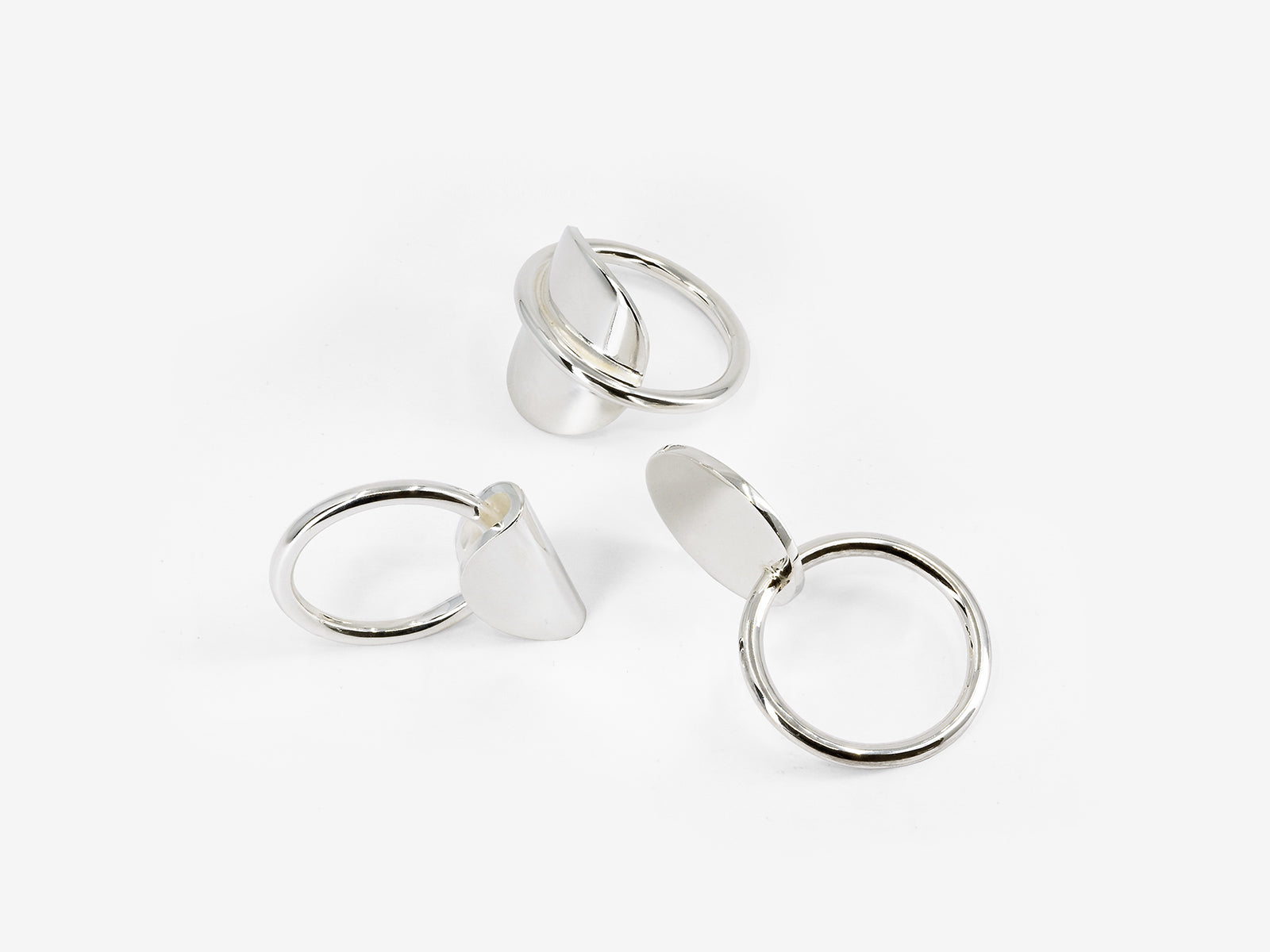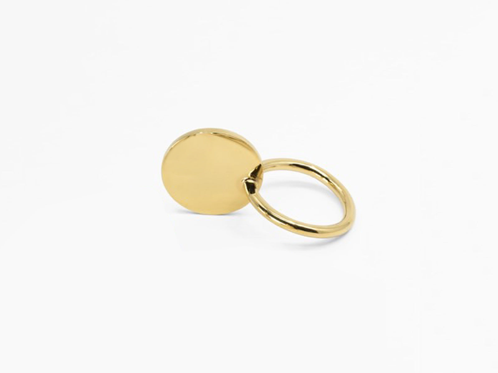 The Disk rings are a reinterpretation of the traditional practice of using coins in classic jewellery formats. The coin becomes an abstracted disk the size of a gold sovereign, it is manipulated and combined with a generic ring to form a series of dynamic pieces.