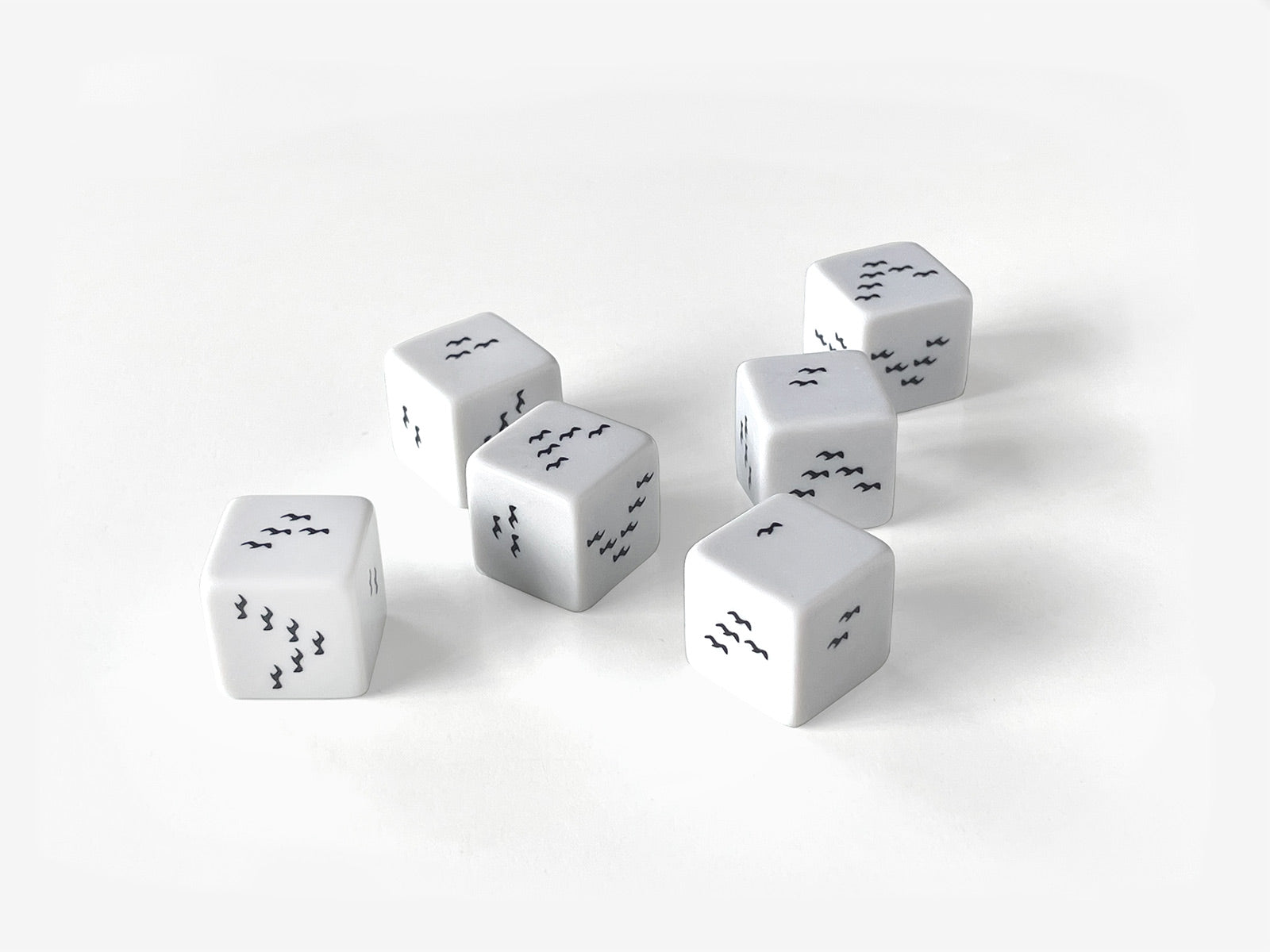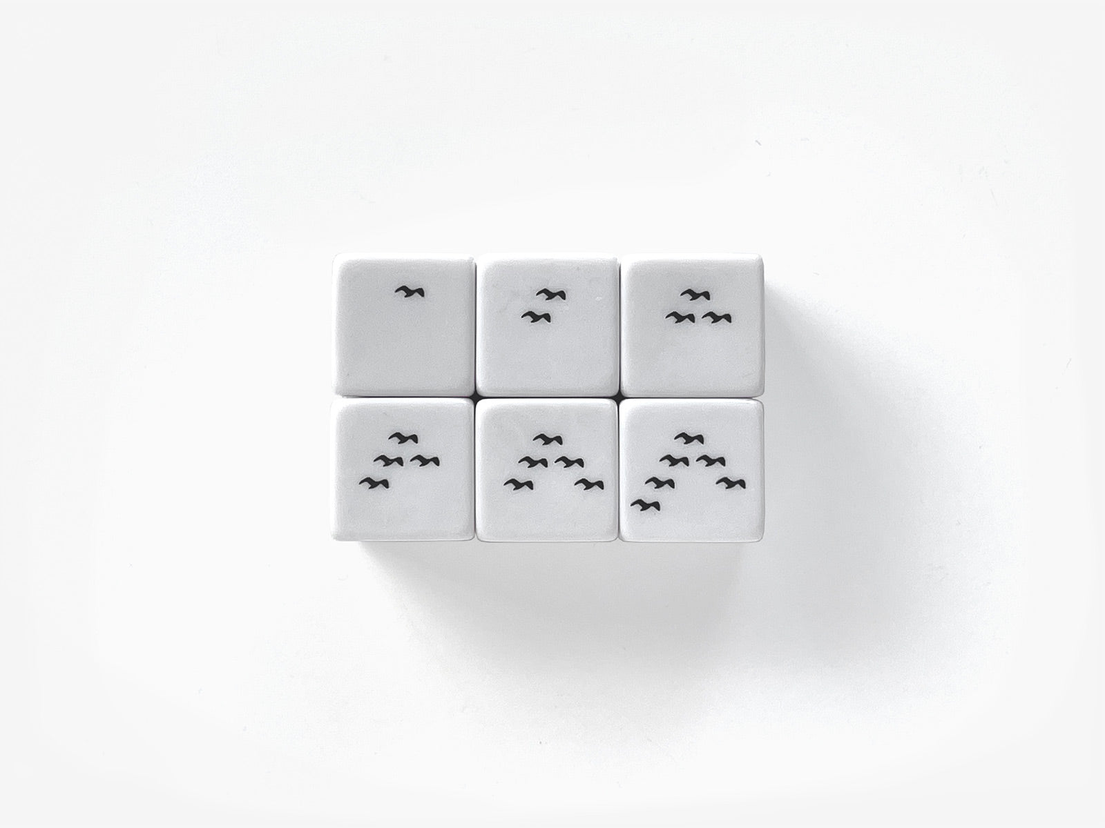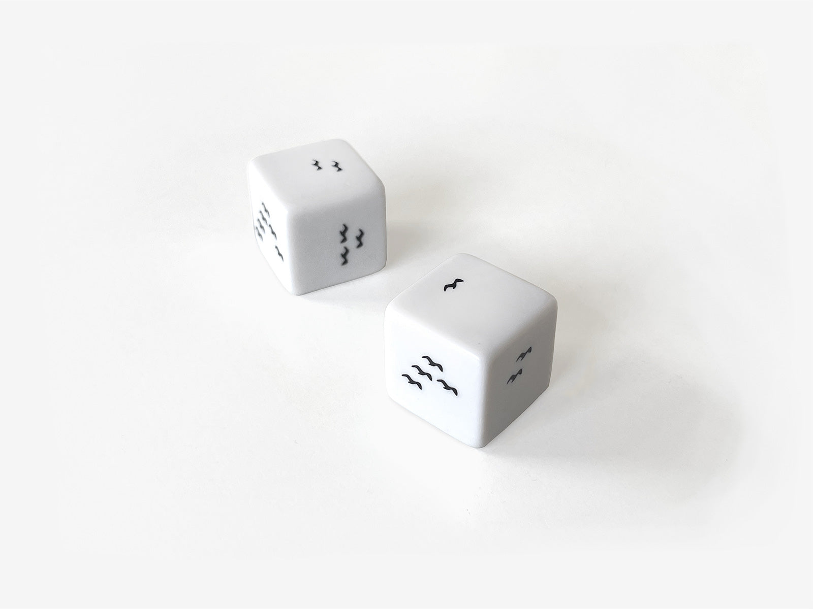 Flight Dice are part of a series of dice works designed and produced by Sebastian Bergne in recent years. In this execution, the iconic arrangement of dice dots are replace by another highly recognisable arrangement, the typical V formation of flying birds.