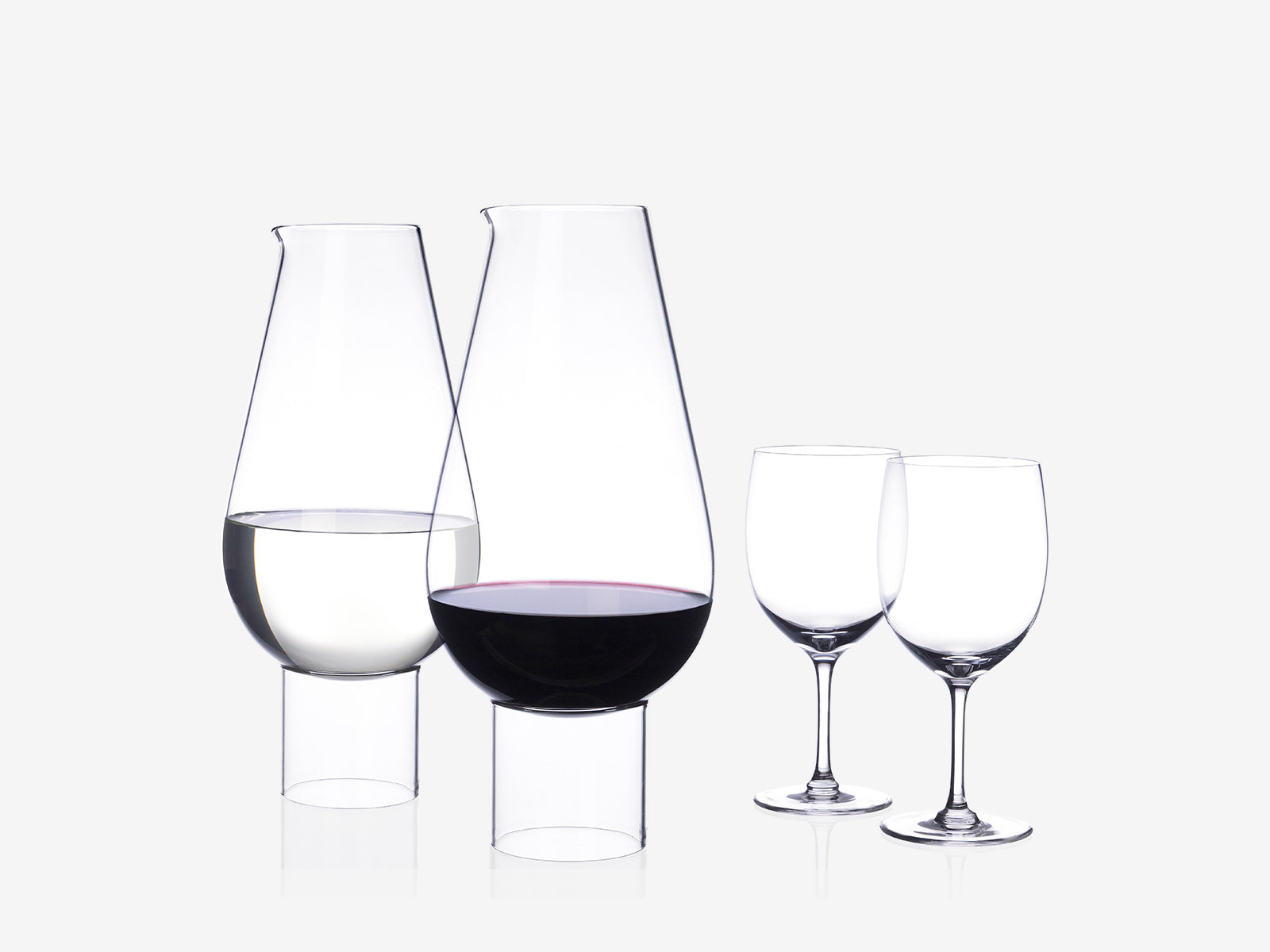 A hybrid vessel that is both wine decanter or water jug, sometimes even a flower vase. The design contains features from the worlds of both stemware and serving glass that makes it feel at home on almost any table.