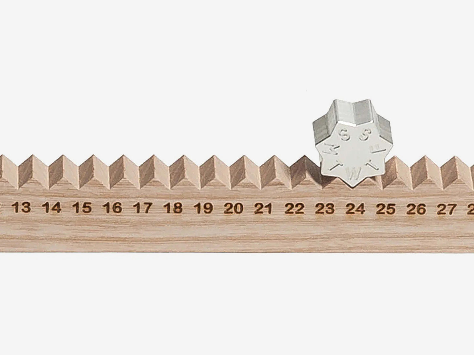 Monthly Measure is both a perpetual calendar and ruler. The star is positioned on the serrated side of the ruler to show the day and date in the month. The date is easily changed by rolling the star along the ruler.