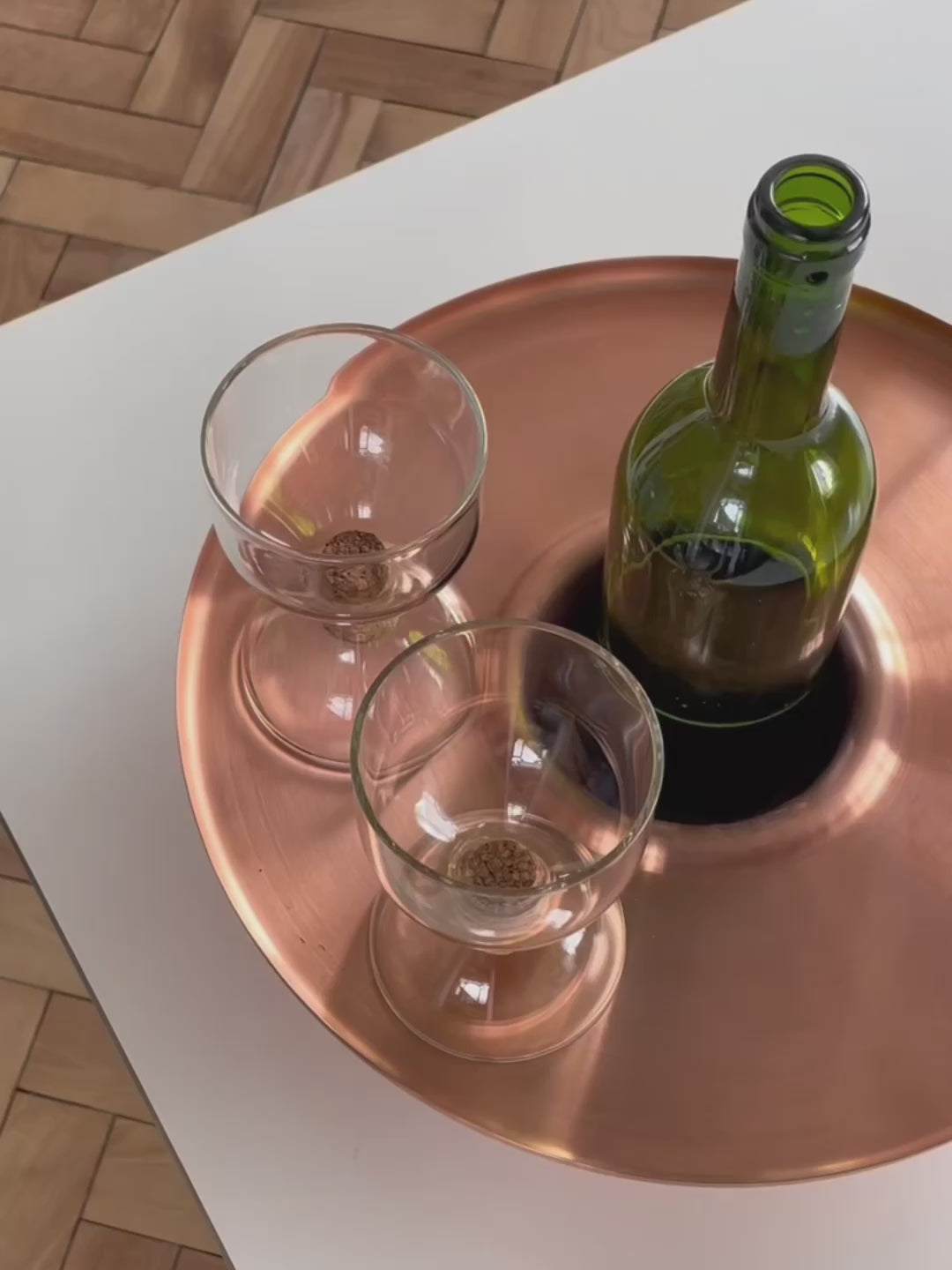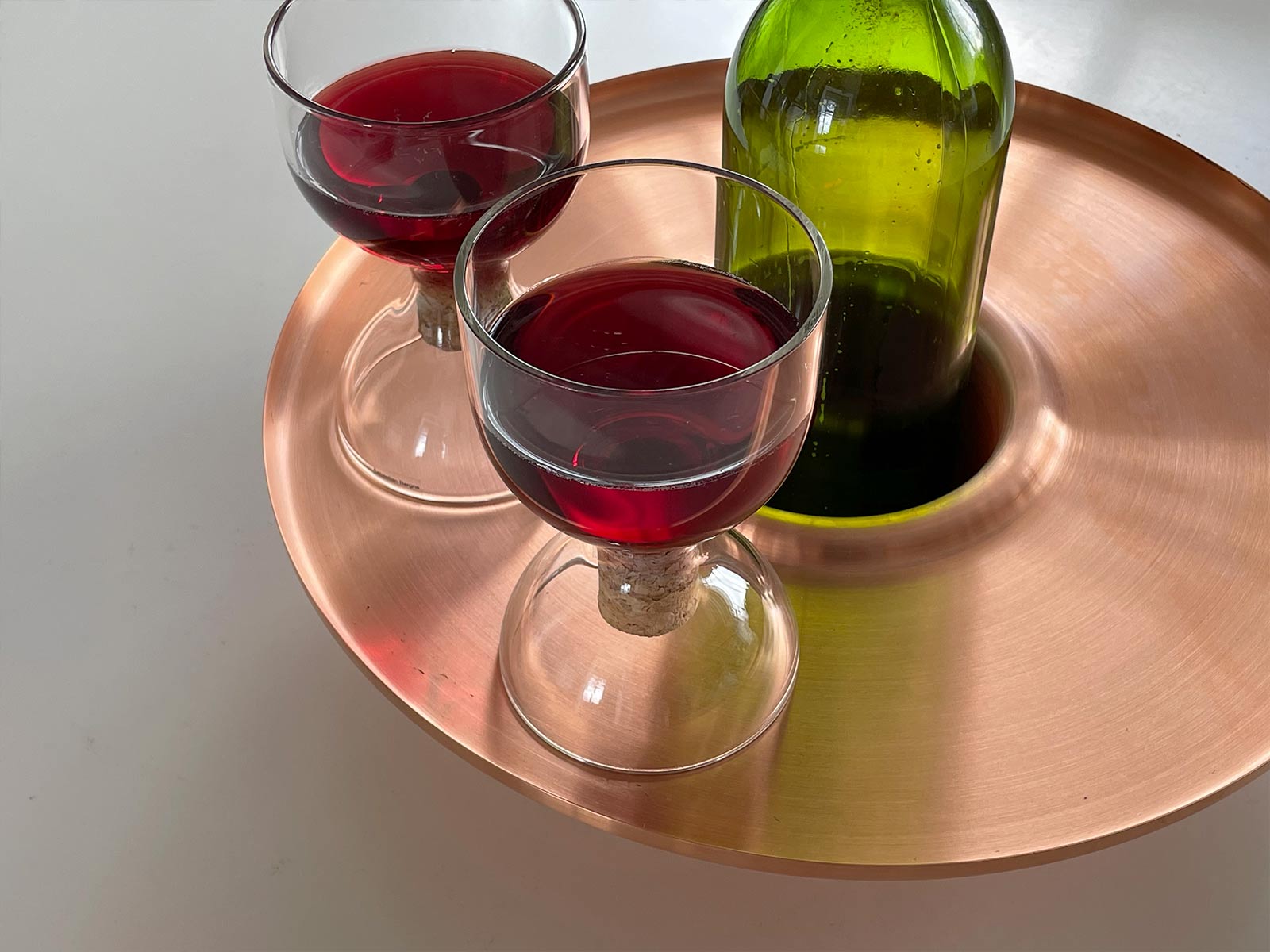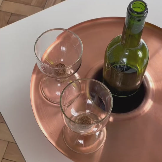 The solid brass tray / ice bucket makes it more festive and easier to serve chilled Champaign or white wine. The copper tray / holder improves the presentation and experience of enjoying non chilled wines, reducing the chance of a knocked over bottle or staining a table top with red wine drips.