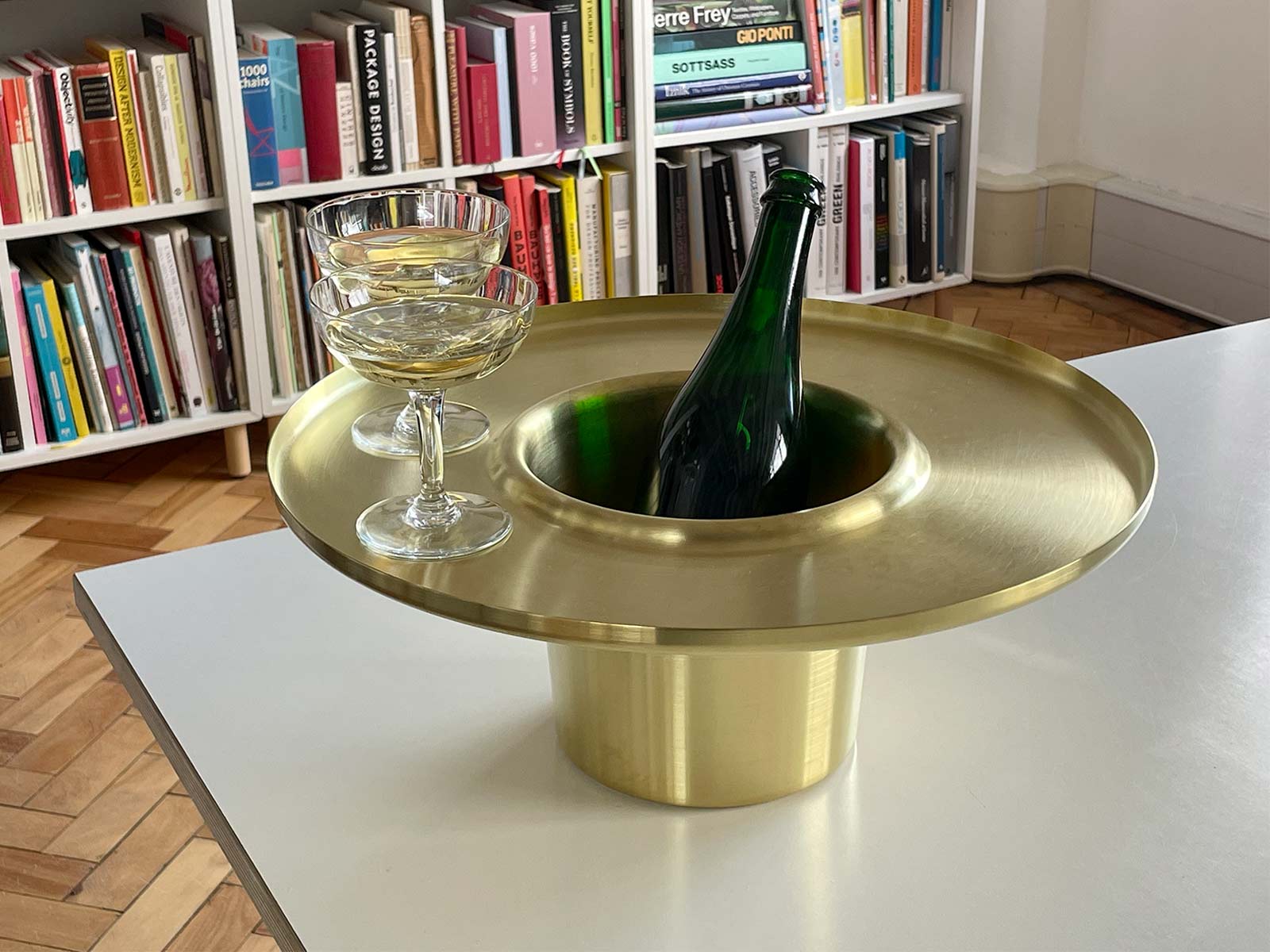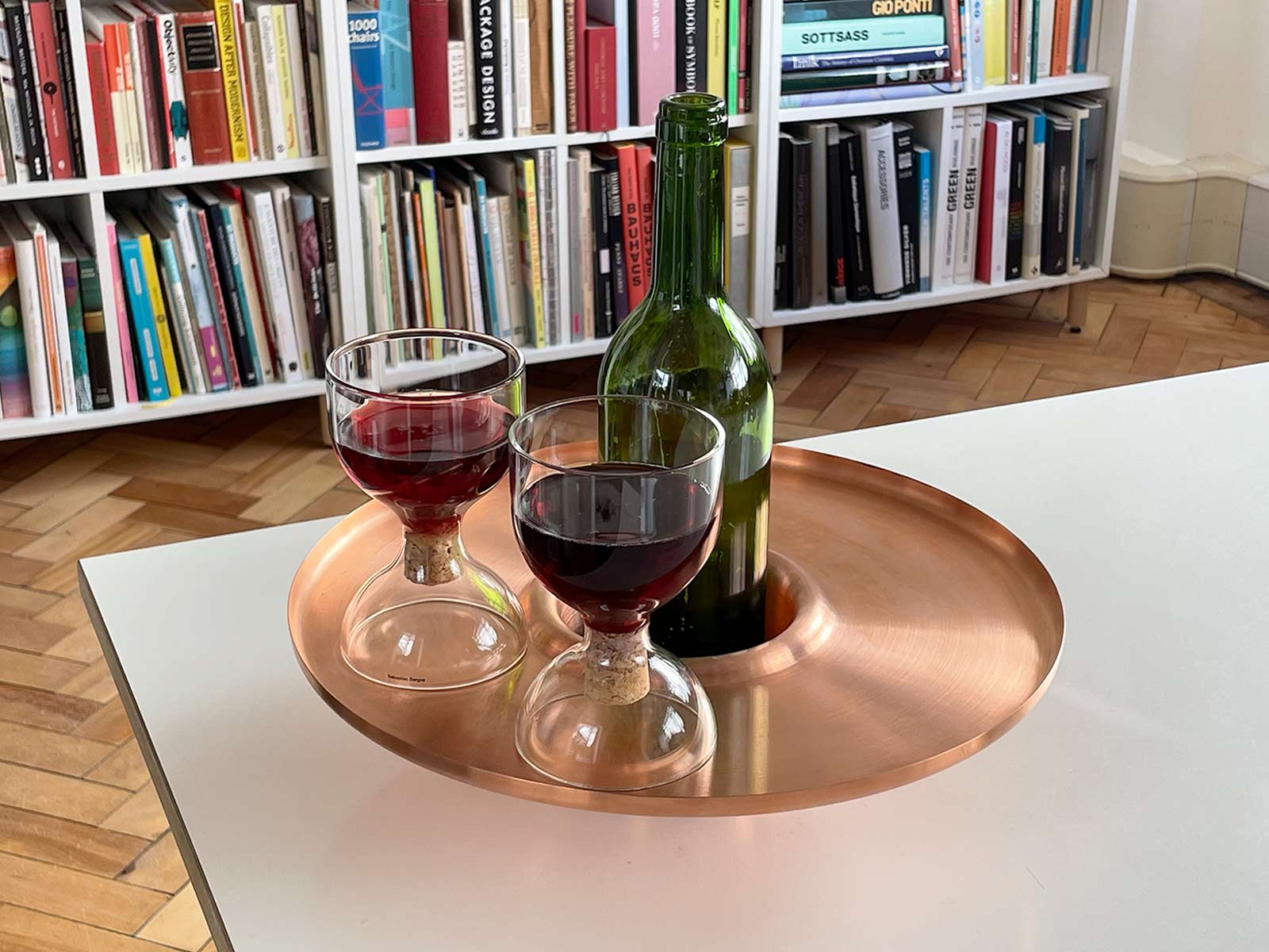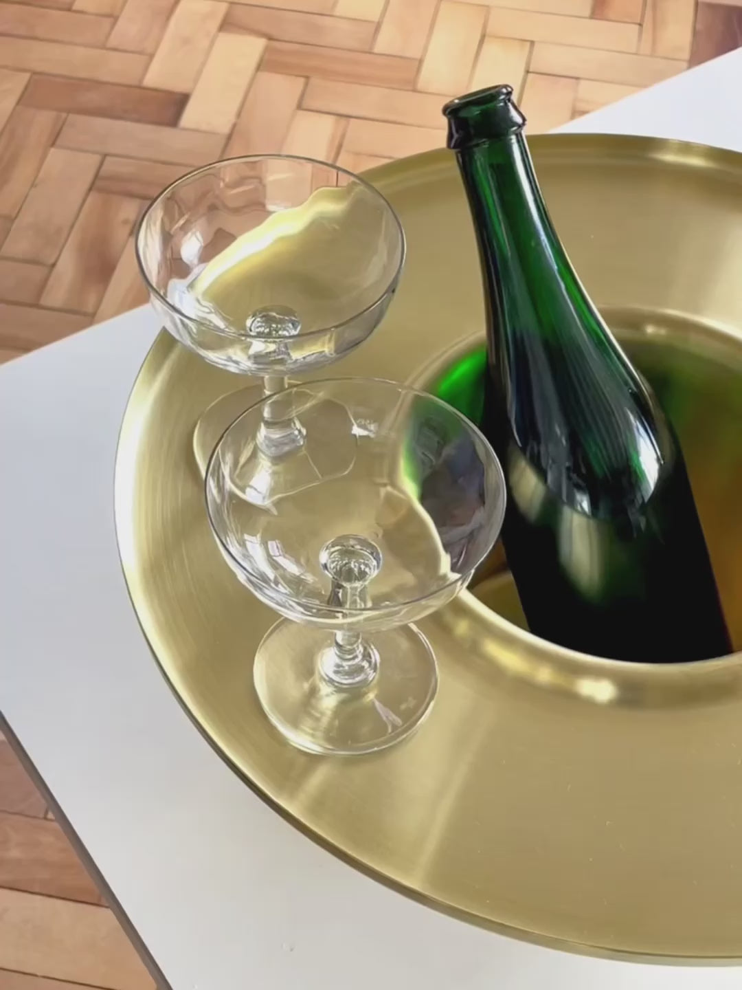 The solid brass tray / ice bucket makes it more festive and easier to serve chilled Champaign or white wine. The copper tray / holder improves the presentation and experience of enjoying non chilled wines, reducing the chance of a knocked over bottle or staining a table top with red wine drips.